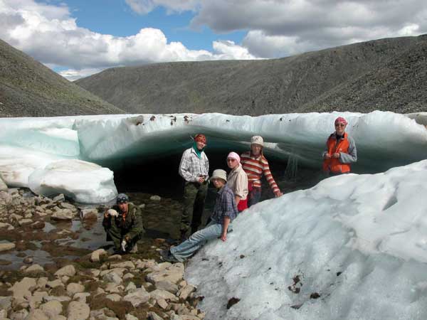 Голубые струйки со звоном стекают в текущую в ледяном «туннеле» речку, устремляясь вниз, к теплу и солнцу. Кое-где над берегами нависают многометровые снежники, постепенно стекающие в реку. За короткое приполярное лето этот снег часто не успевает растаять, превращаясь в фирн и лед. Гляциологи говорят, что уральские ледники находятся ниже зоны «вечных» снегов и существуют вопреки всем теориям о климатической снеговой границе.