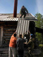 В этом году здесь много работы по обустройству: Немецкий Фонда Всемирного наследия выделил парку «Югыд ва», являющегося территорией Всемирного наследия Юнеско, грант на развитие экологического туризма. Здесь планируется отремонтировать домики, построить баню и туристские стоянки. Работы много, и наша помощь как нельзя кстати. За жаркие дни успели покрыть шифером продырявленные зимними ветрами крыши домиков, сделали косметический ремонт в самом просторном из домов.