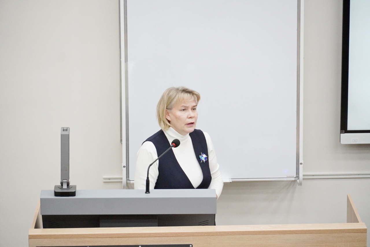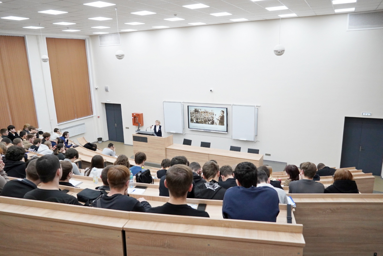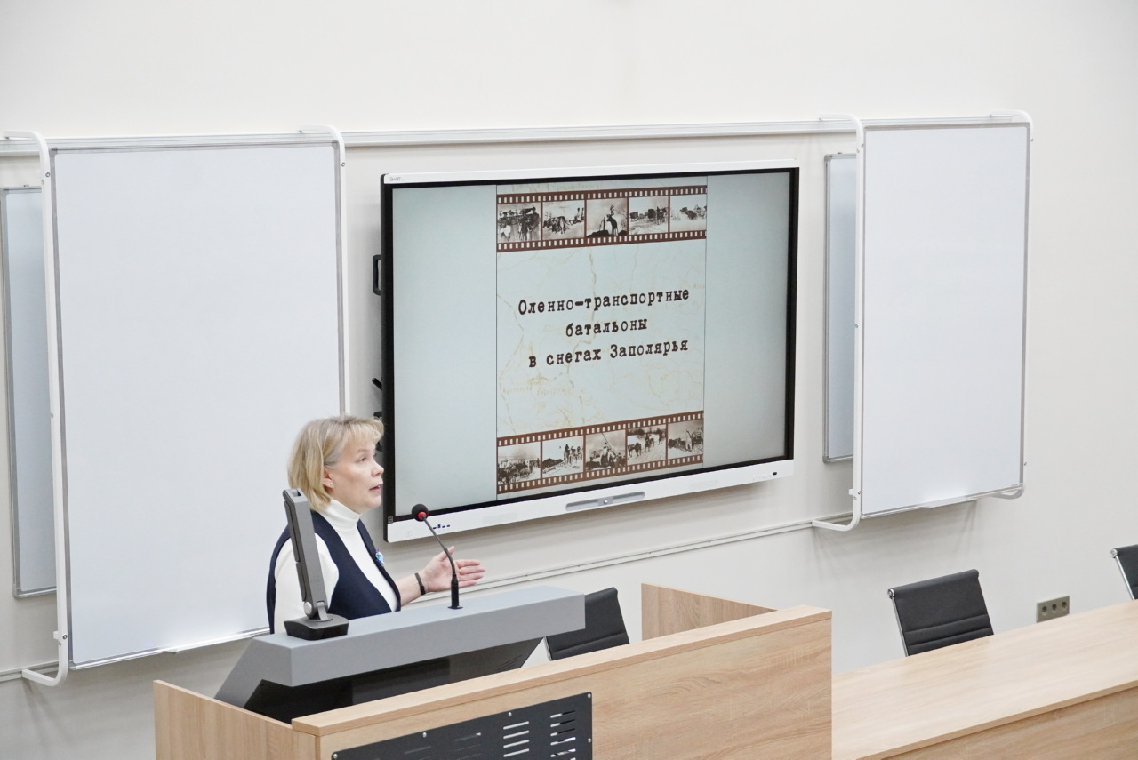 Лектором для студентов выступила кандидат исторических наук, доцент кафедры «Экономика и управление» Татьяна Александровна Мартынчук. Она рассказала ребятам о малоизвестной, но героической странице истории – подвиге оленеводов и их питомцев на самом северном участке фронта.