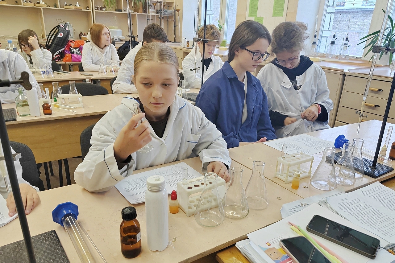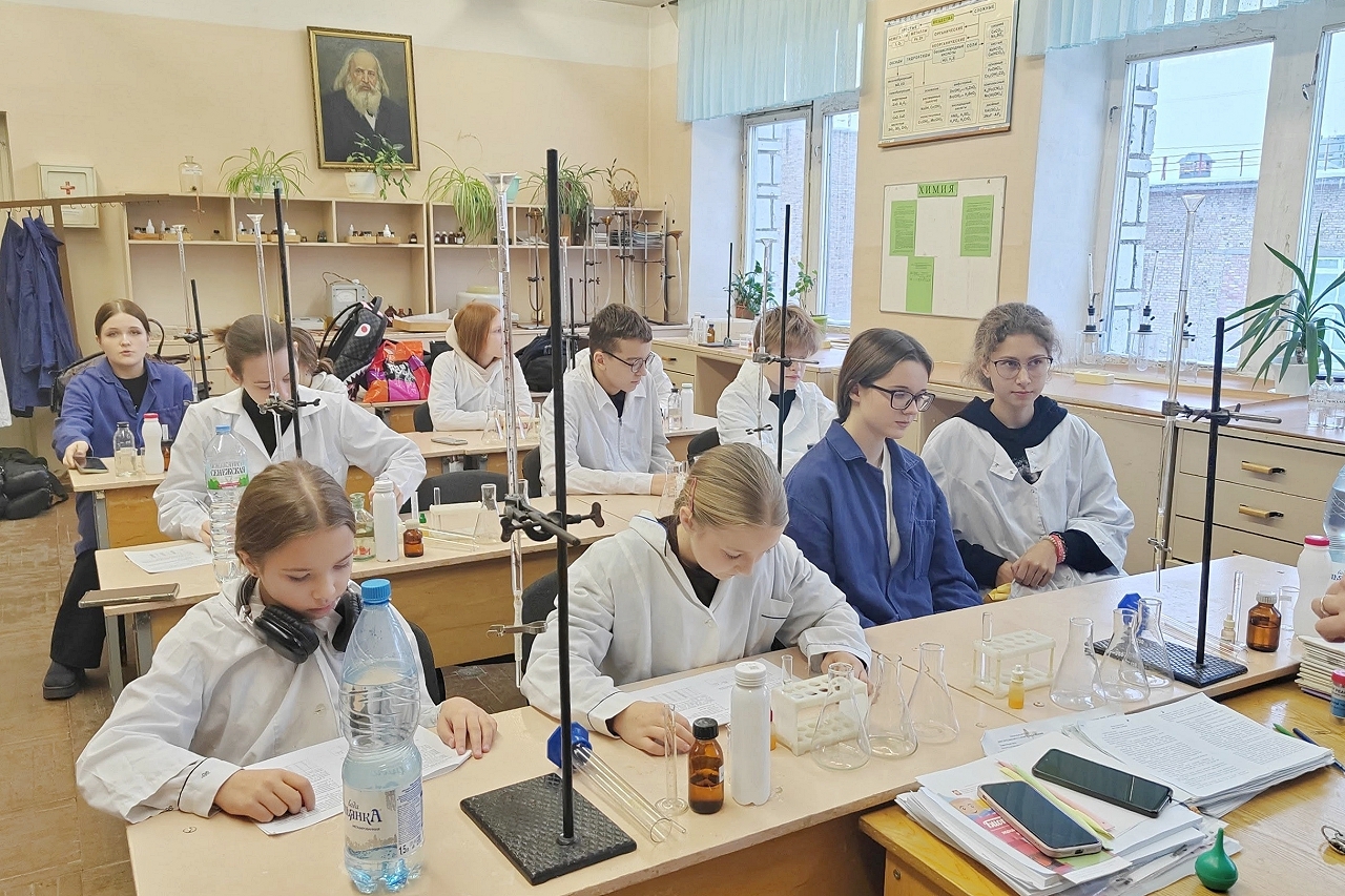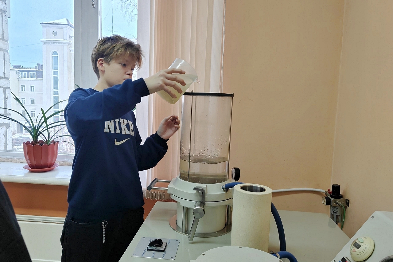 В рамках экологического блока школьники под руководством наставников работали с химическими реактивами, выполняя несложные, но наглядные опыты. Это позволило им понять основы химико-аналитического контроля состояния окружающей среды.
