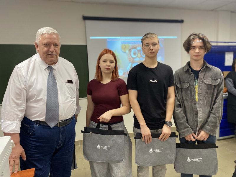 Александр Анатольевич лично наградил победителей мероприятия памятными призами от Сыктывкарского лесного института, подчеркнув значимость инициативы и таланта молодых технических специалистов.
