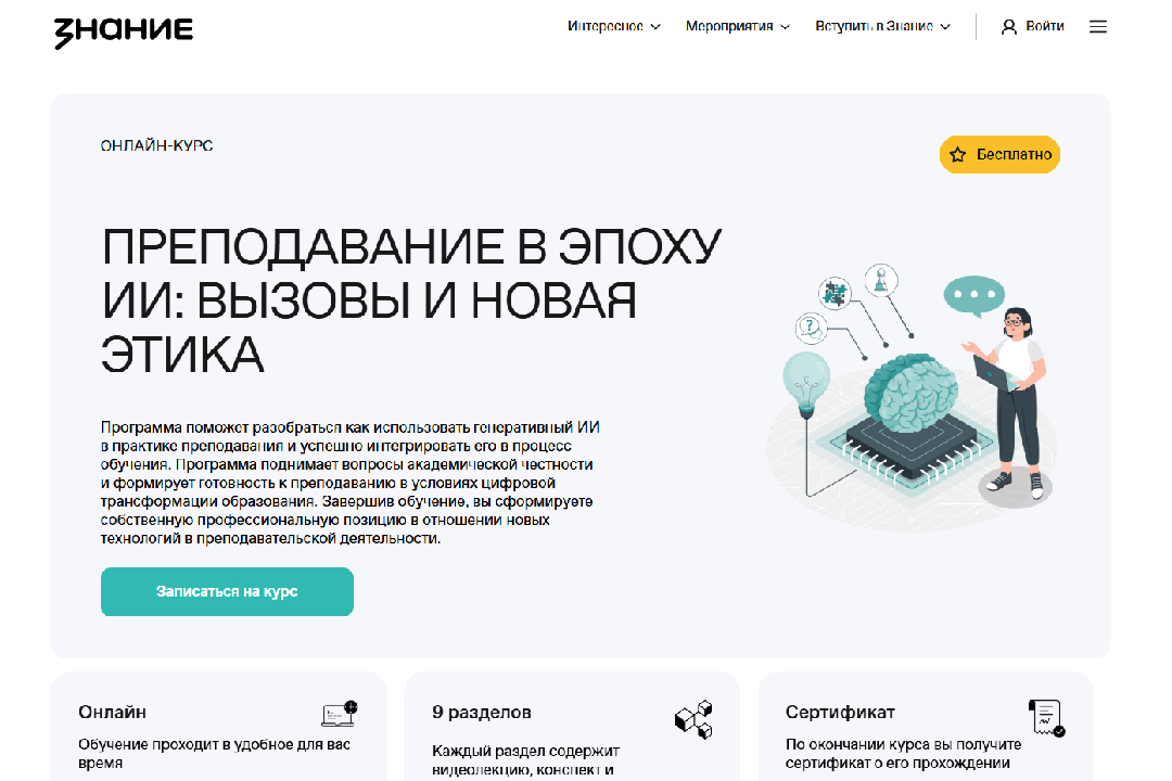Ссылка на курс: https://akademiya.znanierussia.ru/course/prepodavanie-v-epohu-ii-vyzovy-i-novaya-etika/