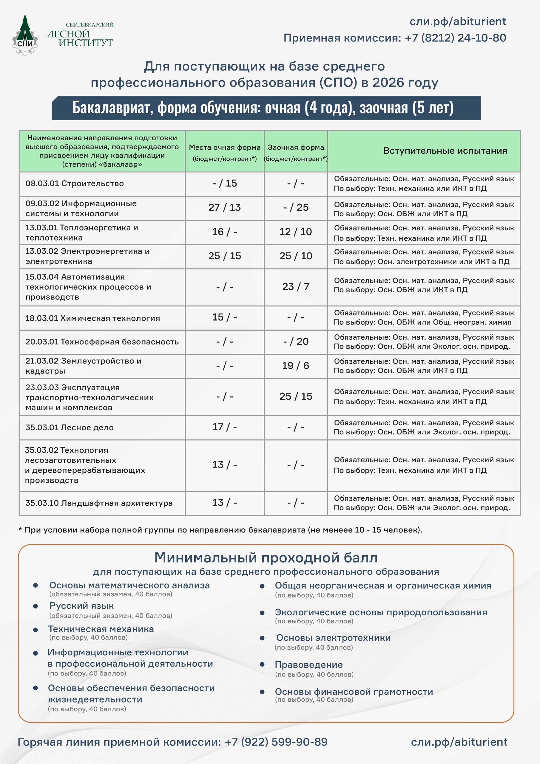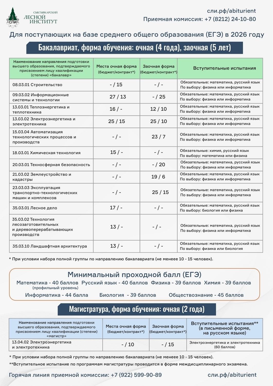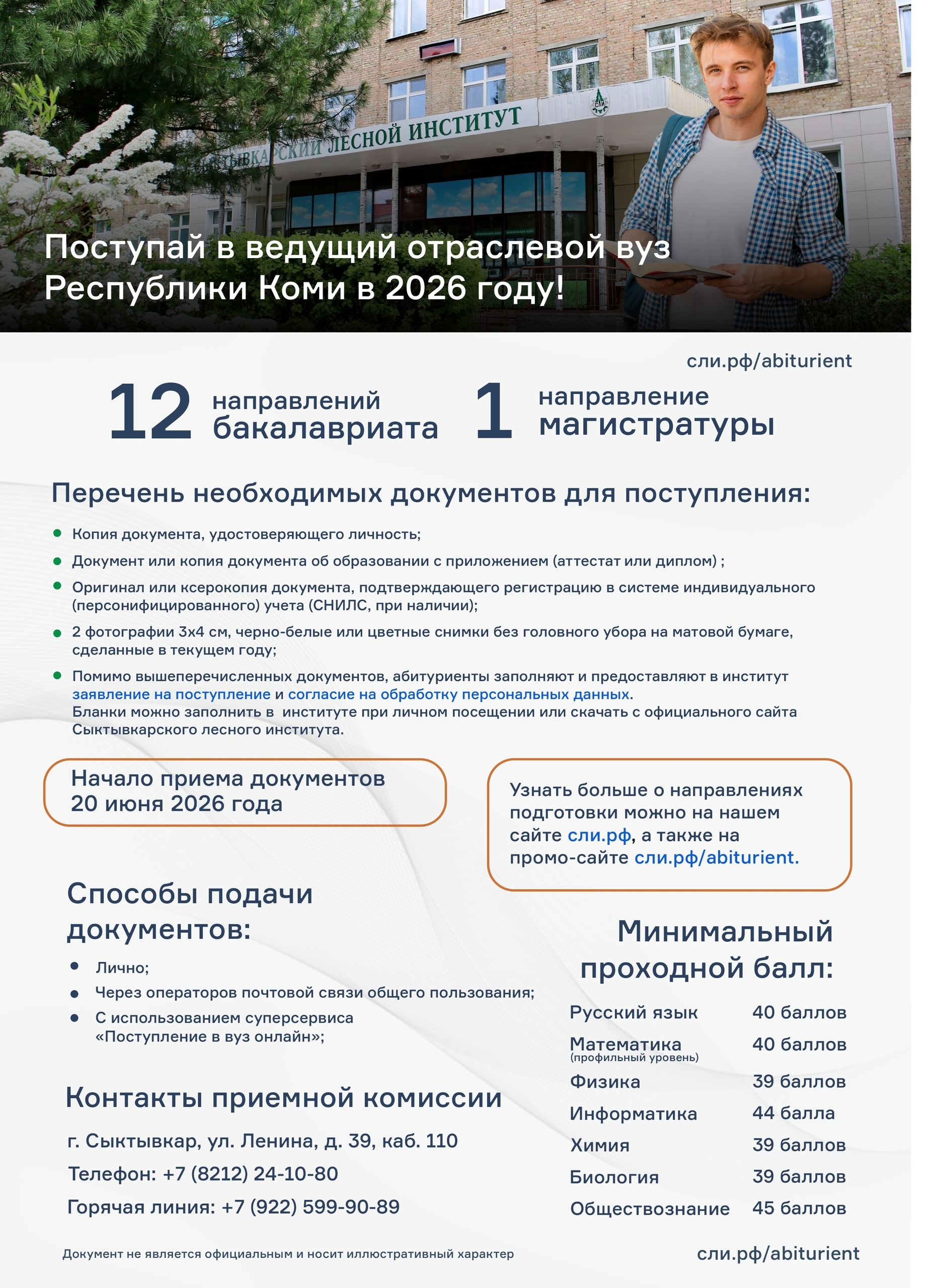 Сыктывкарский лесной институт объявляет контрольные цифры приёма на 2026/27 учебный год!