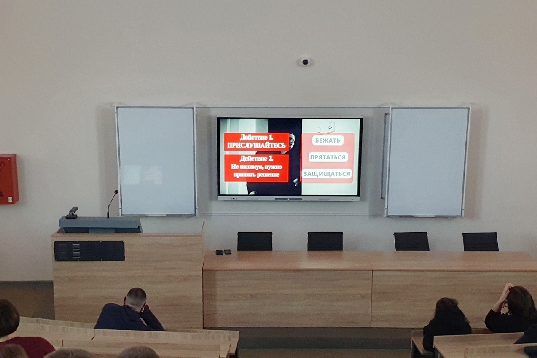Демонстрация фильмов носила не формальный, а глубоко практический характер. Основной акцент был сделан на детальный разбор реальных ситуаций, формирование четкого понимания, как распознать угрозу и как грамотно действовать в условиях чрезвычайной обстановки. Важно, что просмотр каждого фильма сопровождался открытым диалогом и обсуждением, где студенты могли задать вопросы и разобрать сложные моменты.