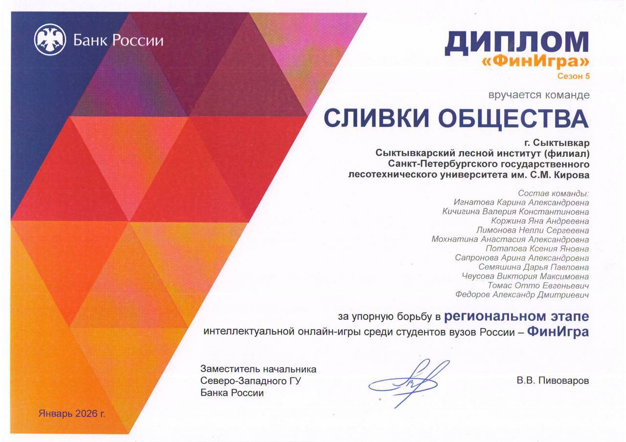 Сыктывкарский лесной институт совместно с Отделением – Национальным банком по Республике Коми Банка России на системной основе ведет работу по популяризации финансово-экономических знаний среди студентов и преподавателей. Одной из ключевых площадок для применения теоретических знаний на практике стала всероссийская интеллектуальная онлайн-игра «ФинИгра».