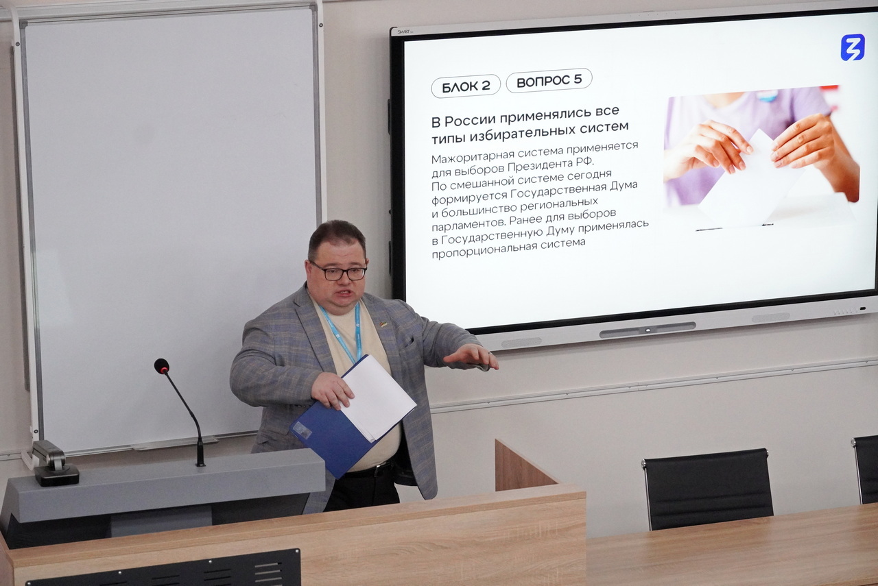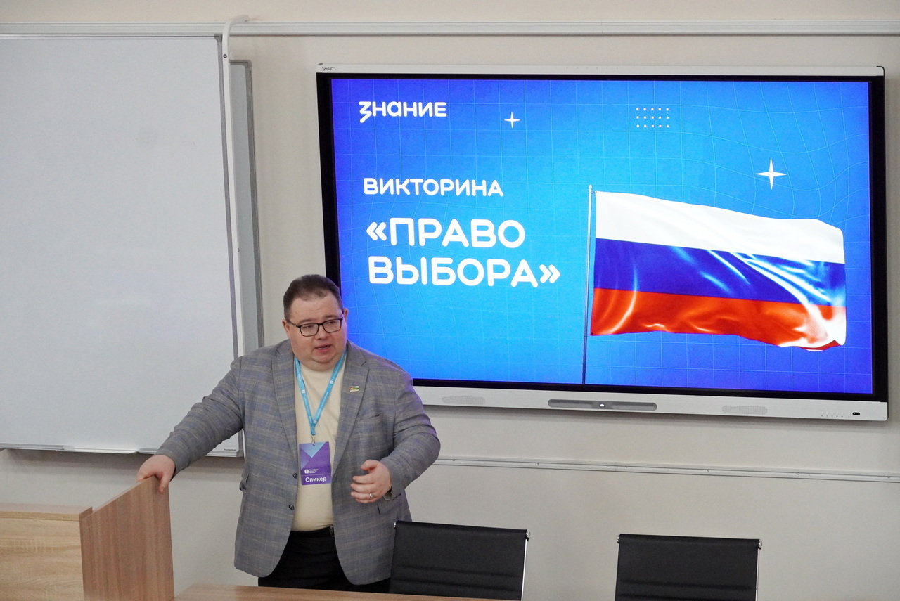 Встреча оказалась не просто лекцией, а настоящим интерактивным погружением в тему избирательного процесса, ведь Алексей Валерьевич предложил ребятам поучаствовать в викторине «Право выбора», специально разработанной обществом «Знание».