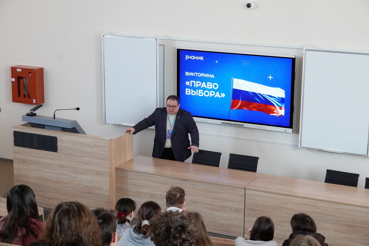 Перед студентами выступил Алексей Облизов — председатель Комиссии по вопросам развития гражданского общества Общественной палаты Республики Коми и лектор Российского общества «Знание». Вместо скучного пересказа законов гость упаковал сложные темы в увлекательную викторину «Право выбора».