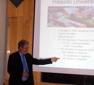 В ходе встречи стороны обменялись информацией о деятельности вузов, которые они представляют, обсудили вопросы подготовки кадров для лесной отрасли. Профессор Политехнического института Матти Кайри выступил с докладом о деревянном домостроении в Финляндии.