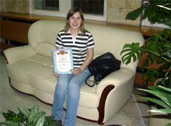 Первым делом мы (Макаров Иван, Савина Нина и я) поехали на награждение в Федеральное агентство по образованию. Так привычно писать это название на титульных листах курсовых, а вот пройтись по коридорам Агентства, посидеть в уютном холле возле фонтанов и, конечно, выйти на сцену актового зала, где тебе вручат медаль, диплом и подарки…. О таком можно было только мечтать.