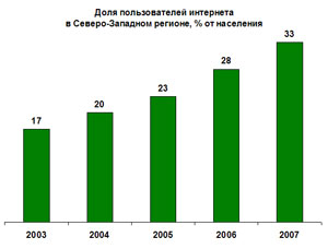 Кроме того, по словам министра информационных технологий и связи РФ Леонида Реймана, быстрыми темпами растет и число пользователей интернета в России. Сегодня в стране 22 млн человек имеют доступ глобальной сети, то есть практически каждый шестой россиянин. При этом в крупных мегаполисах, в частности, в Москве, практически каждый второй житель имеет доступ к интернету.