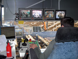 Затем мы посетили компанию «Коскинен», она занимается переработкой древесины: производит фанеру и пиломатериалы. Эта фирма имеет бизнес и в России, а также значительную часть фансырья для своих заводов импортирует из наших лесов. Нам показали некоторые фазы технологического процесса, который абсолютно автоматизирован, поэтому все предприятие выглядит очень безлюдно. Для нас было очень интересно и даже забавно увидеть на разделочной площадке хлысты – действительно это одно из немногих предприятий, которое частично использует хлыстовую технологию (которая у нас пока еще преобладает). И, конечно же, поразила чистота на территории предприятия.