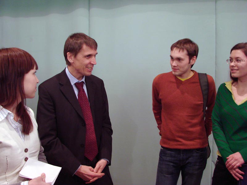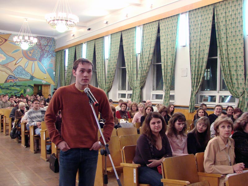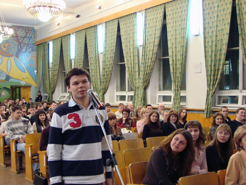 Андрей Николаевич попросил студентов задавать интересующие вопросы и подходить к микрофону. «Я хочу видеть своих будущих работников», – объяснил он. На вопросы касающиеся реализации заключенного соглашения отвечал Алексей Трофимов, а новые проекты компании комментировал Андрей Дрибный.
