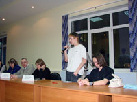 В ходе дискуссии в рамках заявленной темы «Молодежь и занятость» были обсуждены вопросы организации летней занятости студентов, проблемы, возникающие в процессе трудоустройства, и способы их решения. Говорили и об инициативности молодых, наличии у них потребности в работе во время каникул и отношении к труду вообще. Бойцы студенческих отрядов поделились друг с другом опытом лета–2007, который у одних был только положительным, у других – полностью отрицательным. Так, командир стройотряда, работавшего в Астраханской области, сетовал на то, что студенты проживали в некомфортабельных условиях, их плохо кормили, работодатель не выполнил условий договора, который к тому же был оформлен очень неграмотно. Эксперты в свою очередь рассказали о собственном стройотрядовском опыте.