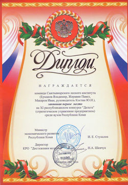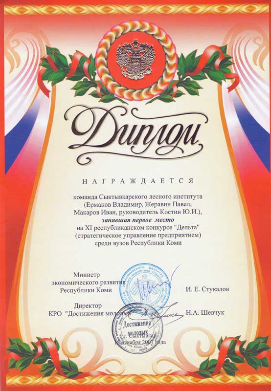 - Ермакова В.А. – студента 5 курса «Экономика и управление на предприятии (лесное хозяйство, лесная промышленность)»;