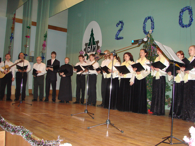 В этот вечер также перед преподавателями и сотрудниками института с концертом выступил ансамбль духовной музыки "Восхождение" Сыктывкарского государственного университета под руководством Натальи Фалиной. Со сцены звучали церковные произведения в хоровом исполнении. В ответном слове заслуженный артист России, народный артист Республики Коми Алексей Моисеенко исполнил народную религиозную песню "Жили двенадцать разбойников".