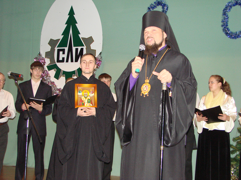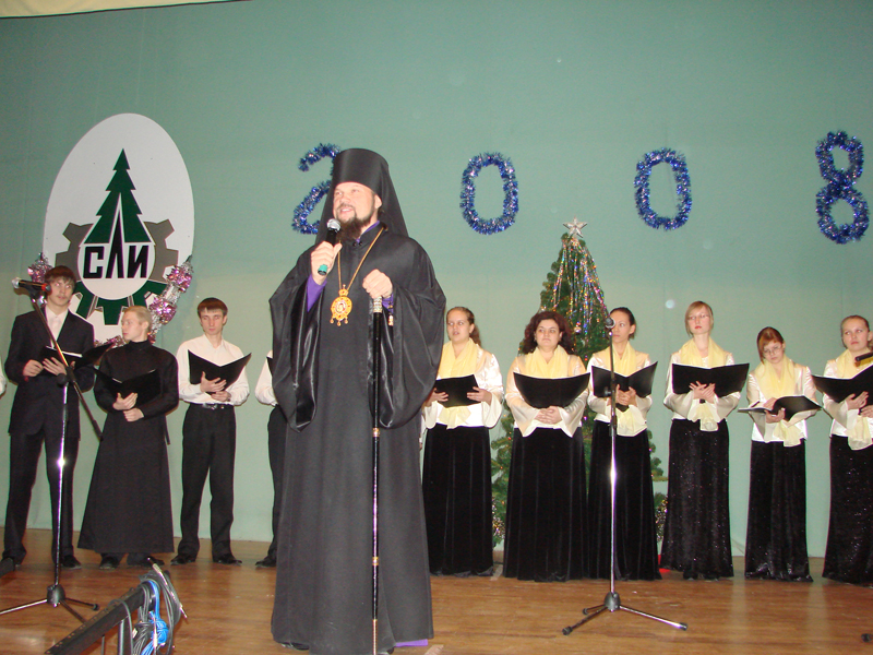 В канун Нового года Епископ Сыктывкарский и Воркутинский Питирим вместе со своими помощниками провел обряд освящения Лесного института. Закончив его, Владыка Питирим поздравил собравшихся с наступающим Новым годом и Рождеством, пожелал Божией помощи во всех благих начинаниях и трудах, здравия и благоденствия. Владыка отметил, что Лесной институт, это место где работают и учатся люди с особыми душевными качествами, именно, из этих стен вышли пять человек, которые сейчас служат в Сыктывкарской епархии.