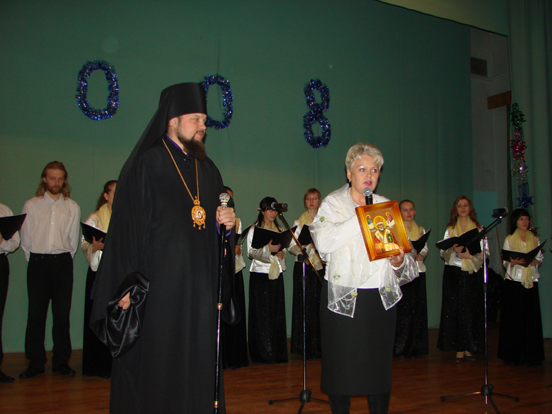 В дар институту Епископ Сыктывкарский и Воркутинский преподнес икону Николая Чудотворца, которую он торжественно вручил директору Сыктывкарского Лесного института профессору Валентине Васильевне Жиделевой.