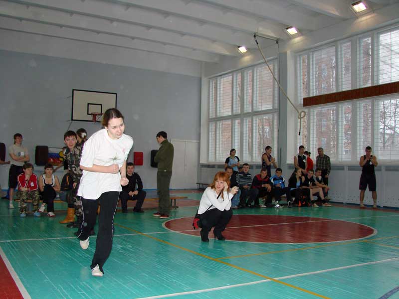 - военно-прикладная эстафета (подъем по канату, бег с препятствиями, прыжки через «коня», продвижение под «паутиной», сборка и разборка автомата, бег в противогазах, переноска пострадавшего из условно зараженной местности) – 2 место (1 место –педколледж 1).