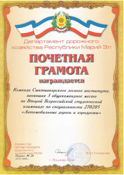20.03.2008 Вторая всероссийская олимпиада по специальности «Автомобильные дороги и аэродромы».