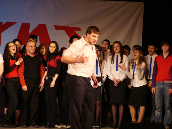 Наши ребята в нелегком, но очень веселом поединке, проходившем под лозунгом «Дорогу – молодым!», показали отличное чувство юмора в двух традиционных конкурсах – «Фристайл» и «Разминка».