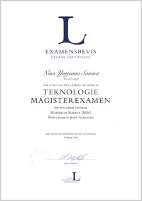 За последние пять лет около 30 студентов Сыктывкарского лесного института прошли обучение в Технологическом университете Лулео (Швеция) по магистерской программе «Деревообработка» и «Химическая переработка древесины», рассчитанной на два года обучения.