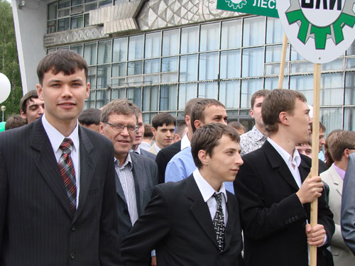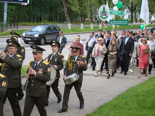 День выпускника начался 28 июня на Театральной площади, откуда колонна выпускников вместе с преподавателями и родителями под музыкальное сопровождение военного оркестра отправилась по направлению к Лесному институту.