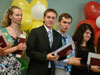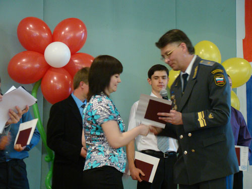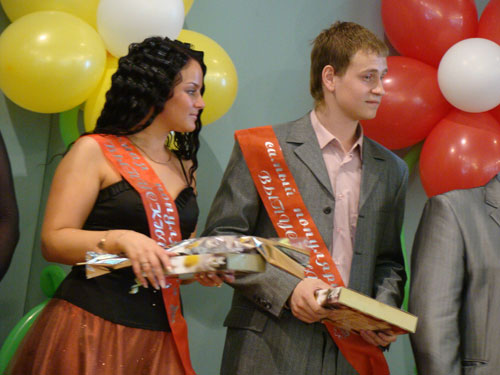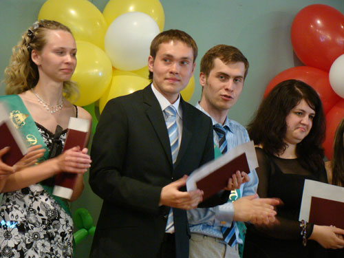 По традиции первыми получали дипломы те, кто достиг наибольших успехов в учёбе. Их в этом году – пятьдесят. Всем «краснодипломникам» вручили также памятные подарки от вуза. После этого пригласили на сцену для вручения благодарностей и памятных подарков тех выпускников, которые добились выдающихся успехов в науке, общественной жизни, спорте и творчестве.