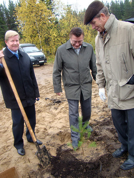 По завершении презентации лаборатории участники торжества, надев сапоги, дождевики и перчатки, вышли на территорию дендрария, чтобы после перерезания красной ленточки приступить к посадке именных сосенок и кедров. Здесь же были вручены сертификаты об участии в проекте и посадке первых насаждений. Ими были удостоены Комитет лесов РК, ОАО «Монди СЛПК», ООО «Новый лес», Министерство природных ресурсов и охраны окружающей среды РК , ОАО «Пригородный», ООО «Горзеленхоз», Центр по гидрометеорологии и мониторингу окружающей среды Республики Коми, Коми республиканский эколого-биологический центр и Сыктывкарский государственный университет.