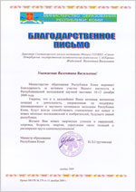 В преддверии Нового года на заседании Совета ректоров РК министр образования Н.Л. Струтинская вручила директору СЛИ профессору В.В. Жиделевой Благодарственное письмо за активное участие студентов и сотрудников института в Республиканской молодежной научной выставке, прошедшей в Сыктывкаре с 10 по 12 декабря 2009 года.