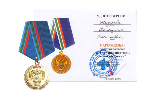 По поручению Министра транспорта Российской Федерации И.Е.Левитина руководитель Дорожного агентства РК вручил им памятные знаки и медали. За большой вклад в подготовку молодых кадров для дорожного хозяйства республики, научно-техническое сотрудничество медали «200 лет транспортному ведомству России» была удостоена директор Сыктывкарского лесного института, профессор Валентина Жиделева.
