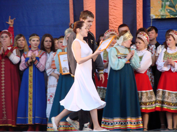 Как уже сообщалось, в четырех номинациях из пяти городского конкурса наши ребята заняли призовые места. На гала-концерте диплом второй степени вручили Екатерине Руденко, Анне Антоненко, Татьяне Пыстиной и команде брейк-данса «Rain». Диплом третьей степени получили Анастасия Оншина, Ксения Яковлева и Алексей Золотухин.