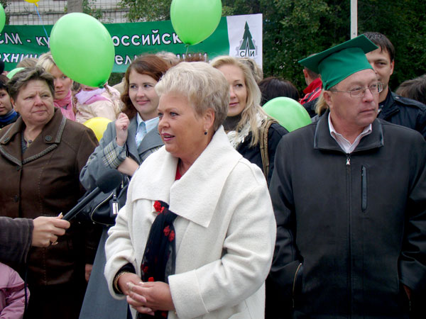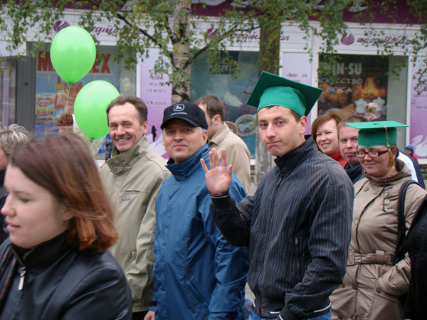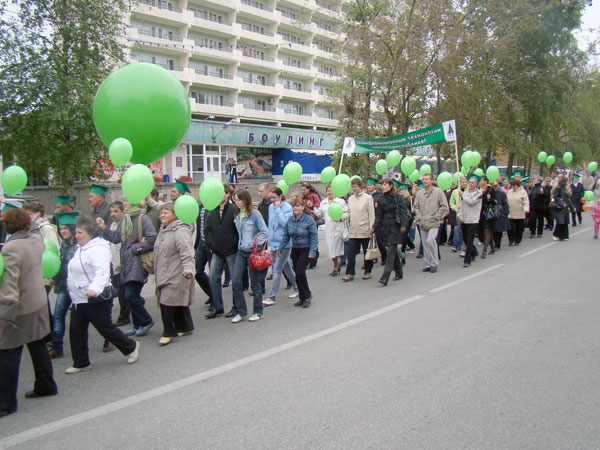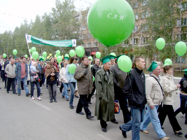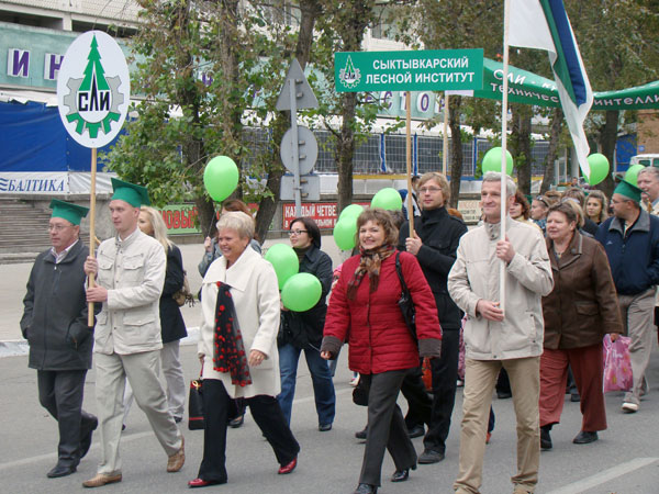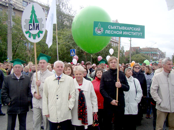 В этом впечатляющем действе колонна Сыктывкарского лесного института была, похоже, самой многочисленной. Впрочем, и по своему оформлению она была одной из ярких. Вместе с другими участниками шествия сотрудники, преподаватели и студенты СЛИ прошли от вокзала до Театральной площади, где состоялось театрализованное представление «С юбилеем, любимый город!», в котором приняли участие творческие коллективы Сыктывкара. Завершилось шествие на Стефановской площади столицы.