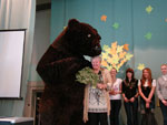 Эмоциональными и несколько неожиданными были поздравления студентов, обучающихся по специальности «Лесное дело». Их специально пригласили для этого на сцену актового зала. Они выслушали наставления «Михайло Потапыча» — не только на годы учебы, но и на будущую профессиональную деятельность.