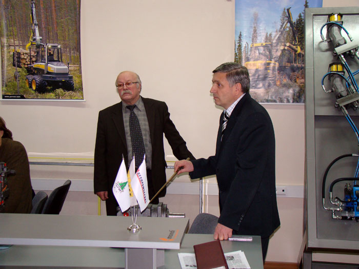 В связи с этим Сыктывкарский лесной институт и привлек внимание представителей компаний. Их интерес к СЛИ еще больше укрепился во время посещения лаборатории «Механика современных лесозаготовительных машин», где гости познакомились с прекрасными возможностями института по подготовке инженеров-механиков для лесопромышленного комплекса. Глядя на флажки с логотипами предприятий-партнеров вуза, принимавших участие в оснащении лаборатории: «Монди СЛПК», «Ponssе», «Леспромсервис», Юрий Смирнов заметил: «Надеемся, что в ближайшее время рядом с этими флажками будет стоять еще один, с логотипом кампании Volvo Truks».