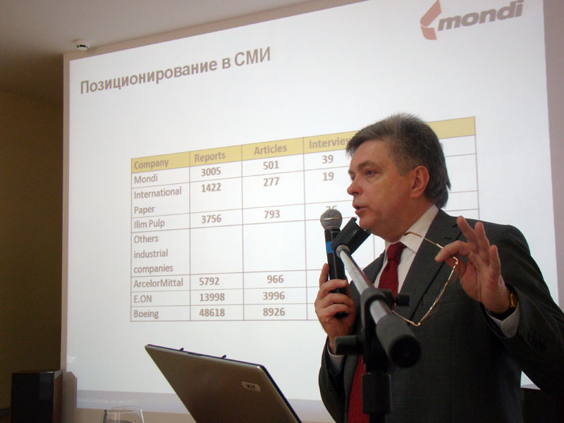 Виктор Аношкин поделился опытом информационного обеспечения деятельности Монди СЛПК. Руководимый им отдел корпоративных коммуникаций работает в тесной связке со смежными отделами предприятия, которые в той или иной мере связаны с внешними и внутренними коммуникациями компании. Системность и комплексность этой работы способствует, в том числе, тому, что Mondi Group — среди наиболее упоминаемых в мировом бизнесе.