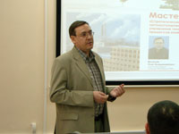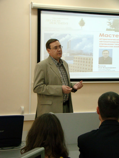 О необходимых условиях повышения производительности технологических процессов, улучшения показателей качества готовой продукции и экологической безопасности говорил на мастер-классе для студентов СЛИ заместитель главного метролога ОАО «Монди СЛПК» Олег Вилисов.