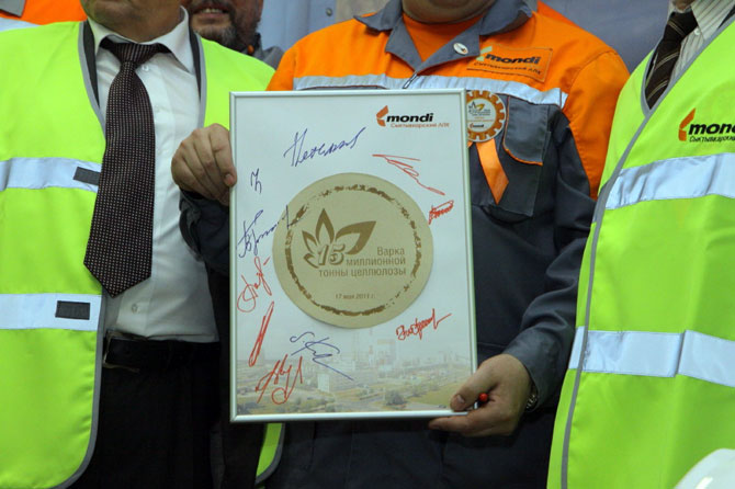 По завершении торжества собравшиеся поставили автографы на рамке с целлюлозой из юбилейной варки. Этот экспонат займет почетное место в музее предприятия. Любовь Гурьева перед тем, как расписаться, сказала: «Я хочу поставить подпись за всех выпускников СЛИ, работающих на Монди СЛПК, и за тех, кому доведется трудиться здесь».