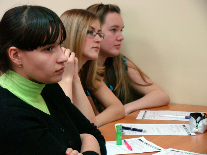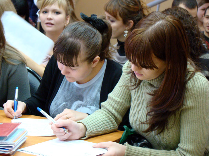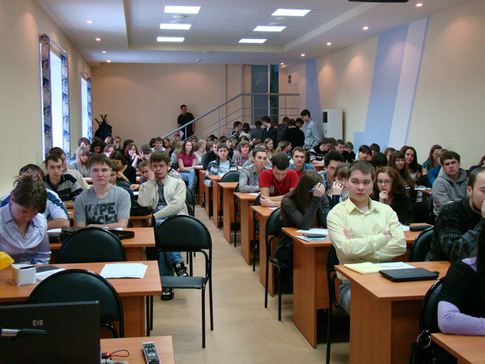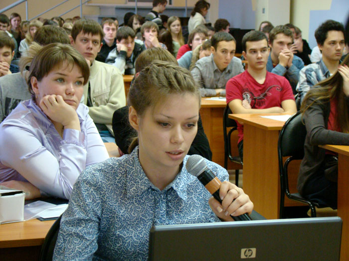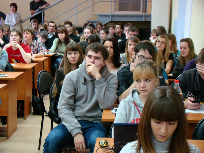 В заполненном до отказа конференц-зале Лесного института собрались студенты СыктГУ, КГПИ, СЛИ и некоторых учебных учреждений среднего профессионального образования Сыктывкара.