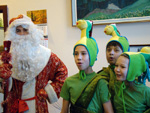 Как и прежде, талантливо и эмоционально поздравили своих старших друзей с наступлением Нового года воспитанники подшефного агрошколы-интерната им. Александра Католикова. Традиционным подарком подопечных Лесного института был гусь. Дети порадовали яркой и веселой инсценировкой. Все, кто присутствовал на этой трогательной встрече, не скрывали своих чувств. В свою очередь, от имени Лесного института директор Валентина Жиделева и почетный президент Николай Большаков вручили дорогим гостям сладкие подарки.