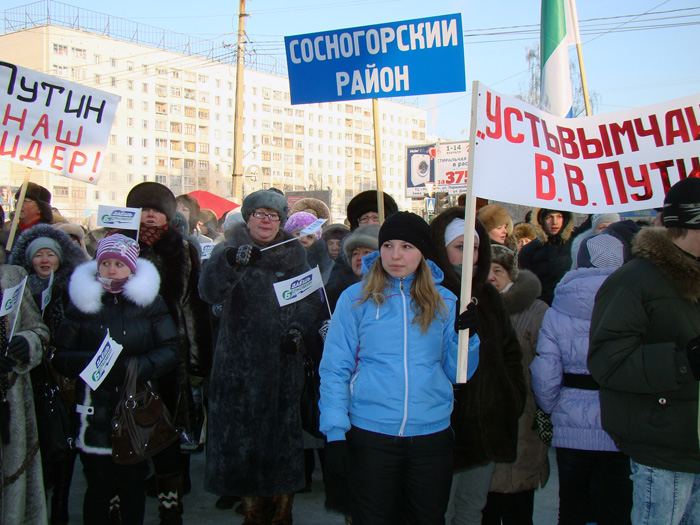 Массовым получился митинг сторонников кандидата в Президенты России Владимира Путина, которые собрались в минувшую морозную субботу под часами у Центрального бассейна. Среди них были и представители Лесного института.