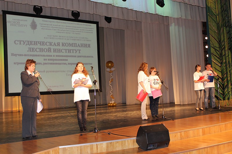 Студенты Сыктывкарского лесного института представили результаты своих научных исследований в агропочвоведении, растениеводстве и кормопроизводстве. В творческой презентации команда СЛИ постаралась донести до гостей, своих коллег и жюри мысль о том, что научный поиск и энтузиазм способствуют преодолению проблем в этих областях сельского хозяйства, делая их более эффективными. То, что наша студенческая команда стала лауреатом в такой серьезной номинации и получила сертификаты, говорит об успешном участии ее в этой юбилейной ярмарке. Представляем: президент Татьяна Зайнуллина, вице-президенты по направлениям Марина Канева, Валентина Семяшкина, Федор Языков, Евгения Хатунцева и Илья Сухарев, руководитель — старший преподаватель Ирина Сергеевна Титова.