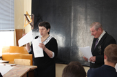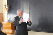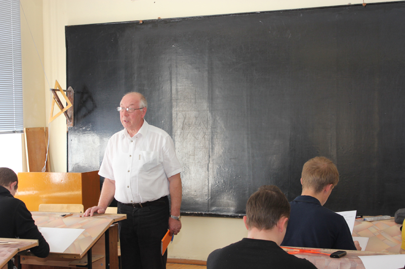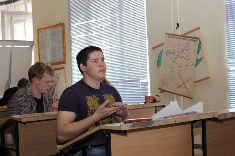Куратор ЛОК РК Петр Мусихин, приветствуя представителей учебных заведений, входящих в эту структуру, напомнил, что будущим инженерам в первую очередь необходимо освоить язык техники — начертательную геометрию. А в основе этой дисциплины, как бы подтверждая его слова, висящий в аудитории плакат гласил: королем технических наук является чертеж.