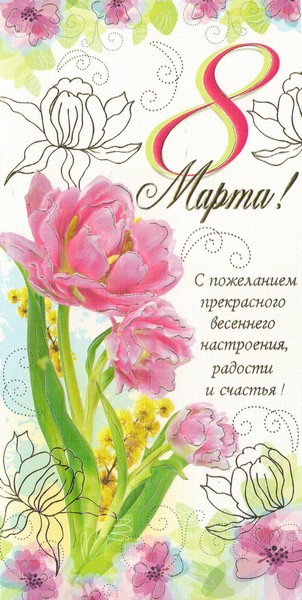 В этот праздничный весенний день от всей души желаю вам доброго здоровья, счастья, любви и согласия в семье, успешной реализации жизненных планов!