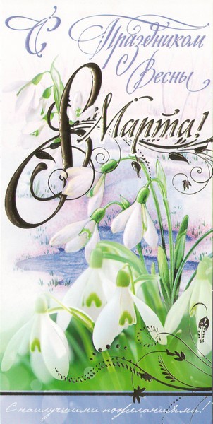 В этот прекрасный весенний праздник от всего сердца желаем Вам счастья, семейного уюта, удачи и благополучия! Пусть Ваше сердце всегда будет согрето любовью и теплом родных, и близких! Пусть Вас всегда сопровождает хорошее настроение, уверенность в завтрашнем дне, а все мечты обязательно сбываются!