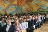 По традиции новоиспеченных студентов благословил епископ Сыктывкарской и Воркутинской епархии Питирим. Владыка прочитал студентам СЛИ стихотворение собственного сочинения, посвященное золотому празднику первого сентября.