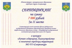 Сквер СЛИ стал серебряным призером конкурса на лучшее содержание, благоустройство и озеленение городской территории. Институт удостоен Диплома II степени и денежного сертификата, которые мэр столицы Иван Поздеев вручил вчера на общегородской планерке заместителю директора по учебной и научной работе Любови Гурьевой.