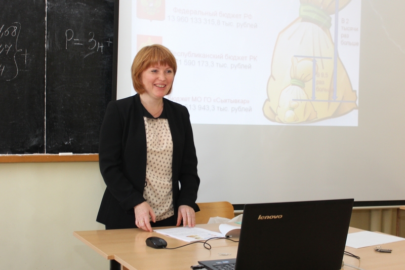 Начальник отдела методологии бюджетного процесса департамента финансов Администрации МО ГО «Сыктывкар» Наталья Синицкая помогла студентам 2 курса направления подготовки «Экономика» понять механизм формирования бюджета города Сыктывкара. Лекция «Поговорим о финансах» стала своеобразным вводным занятием по предмету. Как отметила старший преподаватель кафедры бухгалтерского учета, анализа, аудита и налогообложения СЛИ Галина Кушманова, примеры и цифры приводились из бюджета 2014 года, что, несомненно, сэкономит ребятам время в работе над рефератами и научными исследованиями по этой теме.