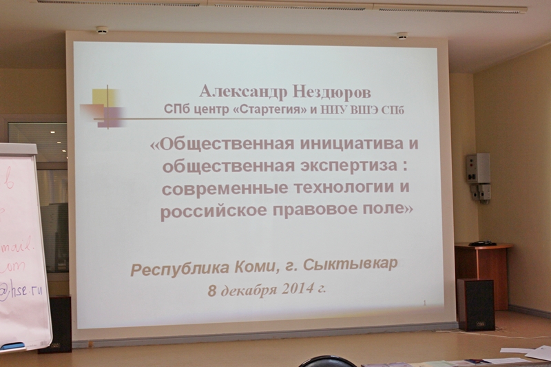 Лекцией-тренингом на тему: «Общественная инициатива и общественная экспертиза: современные технологии и российское правовое поле» открыл семинар кандидат физико-математических наук, доцент кафедры прикладной политологии НИУ ВШЭ г. Санкт-Петербург Александр Нездюров. На следующий день представители муниципалитетов познакомятся с основными направлениями деятельности Общественной палаты Республики Коми, новыми задачами, которые предстоит ей решать в будущем году.