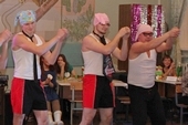 Бурные овации сорвали у зрителей активисты спортклуба «Север» своим танцем ягнят с бараном, в роли которого рискнул выступить зав. кафедрой физкультуры и спорта института Валерий Гребнев. Риск оказался оправданным. Зал взорвался от аплодисментов и криков «Браво».
