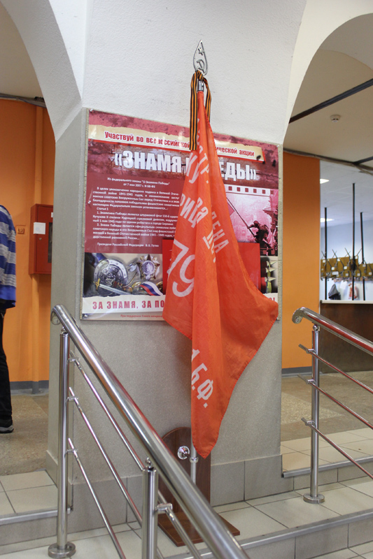 СЛИ стал вторым вузом, распахнувшим двери копии знамени Великой Победы. Патриотическая акция, посвящённая 70-летию Победы в Великой Отечественной войне, в эти дни проходит по всем городам России. В нашей республике старт был дан ей в январе прошлого года по инициативе республиканской общественной организации ветеранов (пенсионеров) войны, труда, Вооруженных сил и правоохранительных органов. Священная реликвия уже побывала во всех школах, колледжах, средних образовательных учреждениях. Первой среди высших образовательных учреждений столицы эстафету принимала Коми республиканская академия государственной службы и управления.